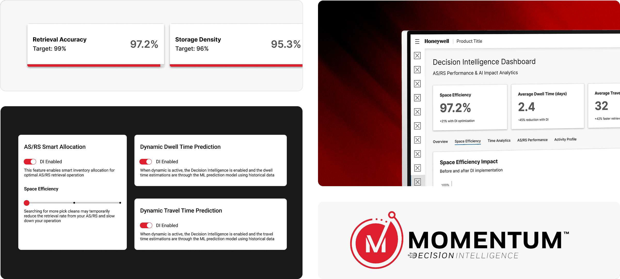Honeywell introduced Decision Intelligence to automate warehouse operations and optimize efficiency through AI-driven insights. Designed as a key upgrade to their Momentum platform, the feature needed to deliver measurable impact while signaling the future of smart warehousing. Alongside leading the UX design, I also created a visual identity for Decision Intelligence to support its positioning within Honeywell’s broader product ecosystem.